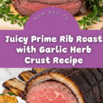 This Prime Rib Roast recipe delivers a perfectly seasoned and juicy roast with a flavorful herb and garlic crust. Ideal for special occasions, the roast is initially seared at high heat to develop a rich crust, then slow-roasted to medium-rare perfection and rested to ensure tender, mouthwatering slices.