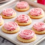Keywords: Pink Lemonade Cookies, Lemon Cookies, Pink Cookies, Lemon Frosting, Spring Dessert, Tea Party Dessert, Soft Cookies
