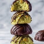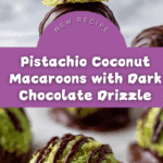Delightfully chewy and nutty Pistachio Coconut Macaroons combine shredded coconut, finely processed pistachios, and a hint of rosewater for floral complexity. These delicate cookies are golden-baked to perfection and finished by dipping the tops in rich dark chocolate for an elegant, flavorful treat perfect for any occasion.