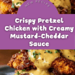 Pretzel Chicken with Mustard-Cheddar Sauce is a flavorful and crispy oven-baked chicken dish coated in a crunchy pretzel crust and served with a rich, creamy mustard and cheddar cheese sauce. This recipe combines savory seasonings and tangy Dijon mustard to elevate simple chicken breasts into a gourmet meal that’s perfect for family dinners or entertaining guests.