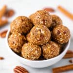 Store the Pumpkin Energy Balls in an airtight container in the refrigerator for up to one week. For longer storage, freeze them in a sealed bag or container for up to three months. To enjoy, thaw in the refrigerator or at room temperature before eating.