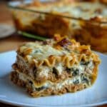 This Pumpkin Lasagna is a cozy, fall-inspired dish that combines creamy three-cheese Alfredo sauce, pure pumpkin, seasoned ricotta, spinach, chicken apple sausage, and shredded mozzarella into layers of oven-ready lasagna noodles. Baked to perfection, it offers a saucy, comforting meal perfect for weeknights or family dinners.