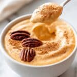 - Assemble Bowls: Portion the pumpkin pie Greek yogurt into serving bowls or mason jars. Top with your choice of toasted nuts, granola or crumbled graham crackers, and drizzle a little maple syrup on top. For dessert, add a dollop of lightly sweetened whipped cream.
