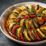 Keywords: ratatouille, French vegetable stew, eggplant stew, healthy vegetable dish, vegetarian French recipe, summer vegetable stew