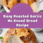 Keywords: roasted garlic bread, no knead bread, artisan bread, homemade bread, easy bread recipe, Dutch oven bread, basil butter, roasted garlic, simple bread