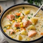Keywords: salmon chowder, salmon soup, creamy chowder, seafood soup, dinner soup, potato chowder