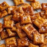 These Salted Caramel Cracker Bites transform humble oyster crackers into addictive, crunchy, sweet and salty snacks with a rich caramel coating. Born from a snow day desperation, this easy recipe involves caramelizing brown sugar and butter, then coating and baking the crackers to golden perfection. They’re perfect for snacking, gifting, or serving with coffee and ice cream.