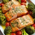 Keywords: sheet pan salmon, easy salmon recipe, quick salmon dinner, healthy salmon, baked salmon with vegetables, one pan meal, salmon and broccoli, 30-minute dinner