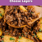 - Layer Ingredients in Slow Cooker: Place half of the sliced potatoes in the slow cooker as the first layer. Sprinkle half of the sliced onions over the potatoes. Then evenly distribute half of the seasoning mix, half of the browned beef, and half of the shredded cheese. Repeat these layers with the remaining potatoes, onions, seasoning, beef, and cheese.
