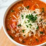 Keywords: slow cooker lasagna soup, easy lasagna soup, crockpot soup, Italian comfort food, cheesy soup, ground beef soup