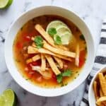 Keywords: Sopa de Lima, Mexican chicken lime soup, roasted vegetables soup, crispy tortilla strips, traditional Mexican recipe