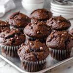 These Sour Cream Double Chocolate Muffins are rich, moist, and bursting with chocolate flavor. The addition of sour cream adds a tender crumb and a slight tang that perfectly balances the sweetness. Loaded with dark chocolate chips both inside and on top, these muffins make a decadent treat ideal for breakfast, snacks, or dessert.