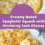 Keywords: spaghetti squash casserole, cheesy spaghetti squash, baked spaghetti squash, Monterey Jack cheese recipe, vegetarian squash casserole