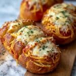 Spaghetti Stuffed Garlic Bread is the ultimate comfort food, brilliantly combining two favorites into one irresistible dish. Crispy, garlicky bread cradles a hearty, cheesy spaghetti filling, making every bite a satisfying blend of flavors and textures. Perfect for cozy dinners or gatherings, this recipe elevates classic comfort food in an exciting new way.