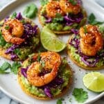 This Spicy Shrimp & Avocado Tostadas recipe features tender, perfectly seasoned shrimp served on crispy corn tostadas with creamy avocado topping and fresh garnishes. A quick and flavorful Mexican-inspired dish perfect for a light lunch or dinner, combining spicy, creamy, and crunchy textures.