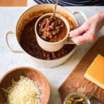 Store leftover chili in an airtight container in the refrigerator for up to 4 days. Reheat gently on the stove or microwave, adding a splash of water if it has thickened too much. This chili also freezes well for up to 3 months; thaw overnight in the fridge before reheating.