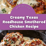 Texas Roadhouse Smothered Chicken is a comforting dish featuring tender chicken breasts cooked in a rich, creamy garlic sauce topped with melted jack cheese. It’s a simple yet flavorful meal that’s perfect for any night of the week.