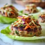 These Thai Turkey Burgers are a flavorful and healthy twist on classic burgers, featuring ground turkey mixed with fresh herbs and spices, topped with a tangy almond butter sauce and vibrant coleslaw. Served on crisp cabbage leaves instead of buns for a low-carb, gluten-free option, this recipe is perfect for a light and delicious meal full of Asian-inspired flavors.