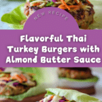 These Thai turkey burgers bring a fresh and flavorful twist to a classic favorite. Packed with tender ground turkey, shredded carrots, and aromatic spices, they pair perfectly with a vibrant almond butter sauce and crisp coleslaw wrapped in cabbage leaves. Ideal for a healthy, satisfying meal that’s easy to prepare and full of bright flavors.