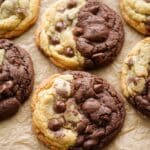 - Step 5: Scoop equal-sized rounds of brownie cookie dough next to each chocolate chip cookie dough round. Gently pinch the edges of each pair together, sealing any gaps.