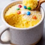 - Rest and Serve: Allow the mug cake to rest inside the microwave for 30 seconds to finish setting. Remove carefully, top with more sprinkles for extra fun and flavor, then enjoy your moist and delicious vanilla mug cake straight from the mug!