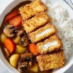 - Serve: Slice the fried tofu and serve over cooked rice with generous ladles of the curry sauce.