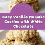 Deliciously creamy Vanilla No Bake Cookies made with a smooth blend of butter, evaporated milk, white chocolate chips, vanilla pudding mix, and quick oats. These easy-to-make cookies come together on the stovetop without any baking required, perfect for a quick sweet treat with a soft, chewy texture and a rich vanilla flavor.