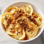 - Prepare Panko Topping: While pasta cooks, heat extra virgin olive oil in a medium skillet over medium heat. Add Panko breadcrumbs and fresh thyme leaves. Season with kosher salt and freshly ground black pepper. Cook, stirring occasionally, until the Panko is golden and crisp. Remove from heat and transfer to a bowl to cool.
