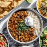 A vibrant and nutritious Vegetarian Burrito Bowl featuring fluffy rice, hearty black beans, sweet corn, creamy avocado, and fresh salsa. This simple and satisfying dish is perfect for a quick lunch or dinner and packs a flavorful punch with wholesome ingredients.