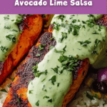 A vibrant and flavorful Zesty Cajun Salmon with Avocado & Lime recipe featuring perfectly seared salmon fillets seasoned with a homemade Cajun spice blend, topped with a fresh, tangy avocado-lime salsa. This healthy and colorful dish combines smoky, spicy, and citrusy notes, making it a perfect main course for a quick dinner or special occasion.
